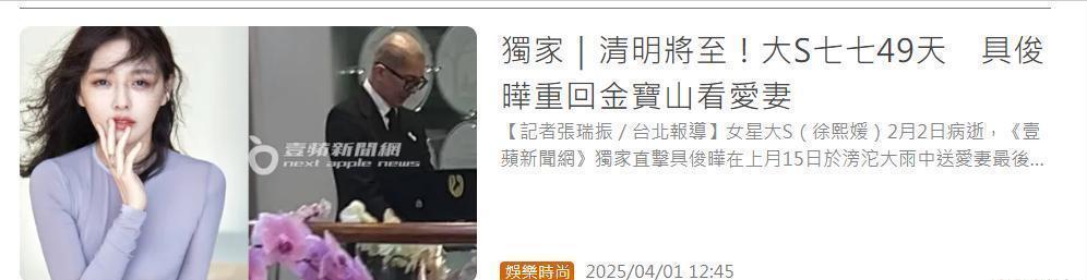 算算时间,从2月2日,大S 去世那天起,到4月1日,正好是49天。