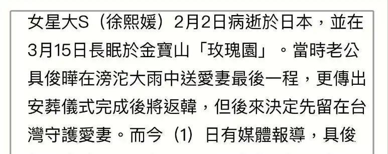 在此之后,网上便传出料理完大S的后事以后,就会返回韩国,不过后来又决定留在台湾守护爱妻。